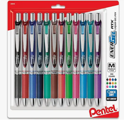 Pentel® EnerGel™ RTX Retractable Liquid Gel Pens, Medium Point, 0.7 mm, Assorted Colors, Pack Of 12 Pens